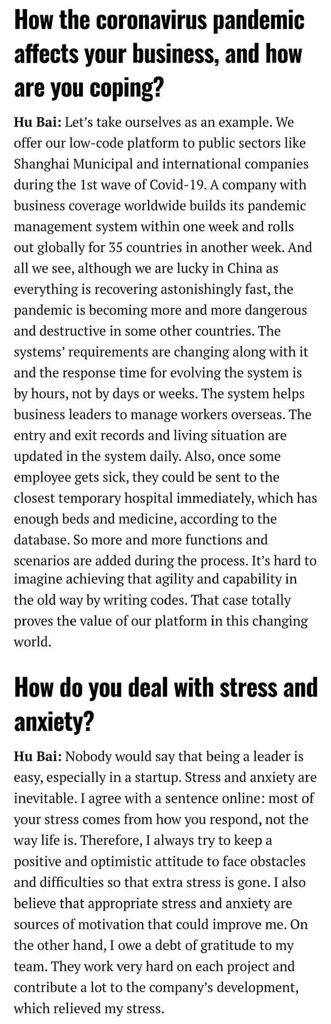 2021年年初,,,,,,,爱湃斯科技CEO胡柏受邀接受法媒Startup.info的专访,,,,,,,与Startup info的读者分享了自己的创业经历、、、、、、、、、、、以及低代码平台VIVO钱包的创新之处。。。。。。。。